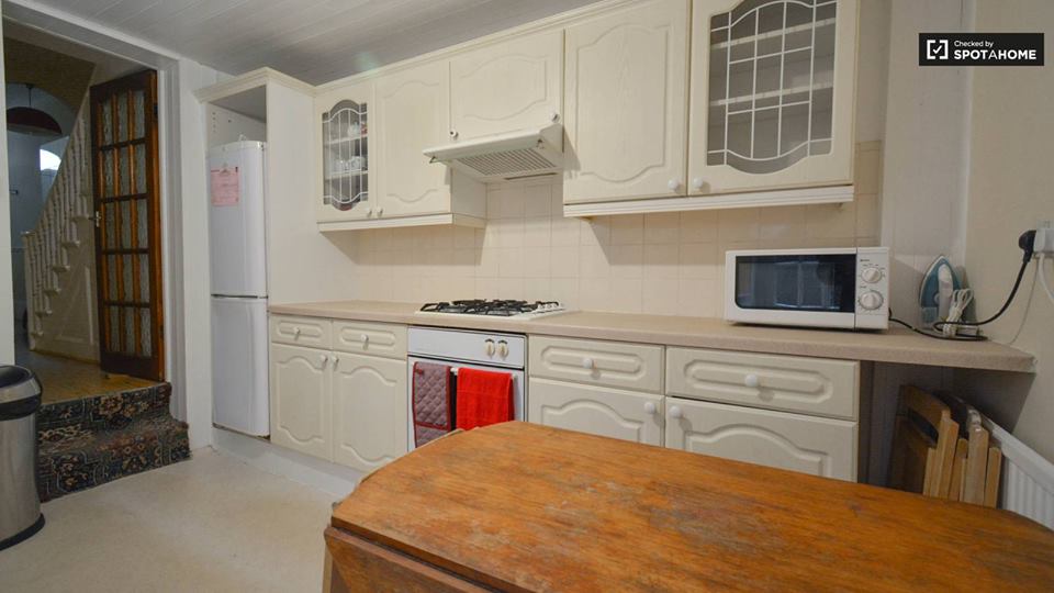 Este quarto possui uma cama de casal, uma escrivaninha e um armário. Você pode usufruir do espaço sozinho ou com outra pessoa. A cozinha é bem completa, com aparelhos modenos e possui máquina de lavar roupas e ferro de passar, além do fogão, mesa e cadeiras. Esta casa possui 5 quartos e um banheiro completo e mais um toilet. A casa tem tudo o que uma pessoa precisa para atender as necessidades básicas, com uma excelente estrutura, equipada e bem localizada.