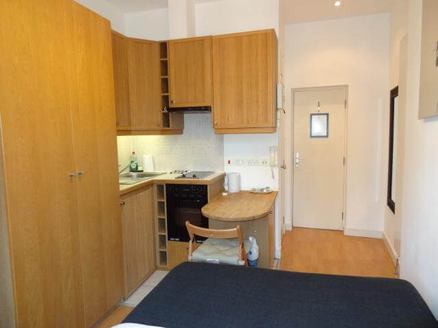 Este Studio está bem conectado juntamente ao centro da cidade através de uma das principais estações de Londres – Kings Cross Station – uma área tranquila e reservada na Zona 1, ótima para quem busca trabalho e também perfeita para aqueles que querem o agito da vida noturna de Londres, pois, está a menos de 15 minutos de SOHO, principal área noturna da cidade. Nesse Studio, contempla-se uma mini cozinha, assim como banheiro com chuveiro. Máquina de lavar e secar estão a disposição de todos os moradores do prédio.