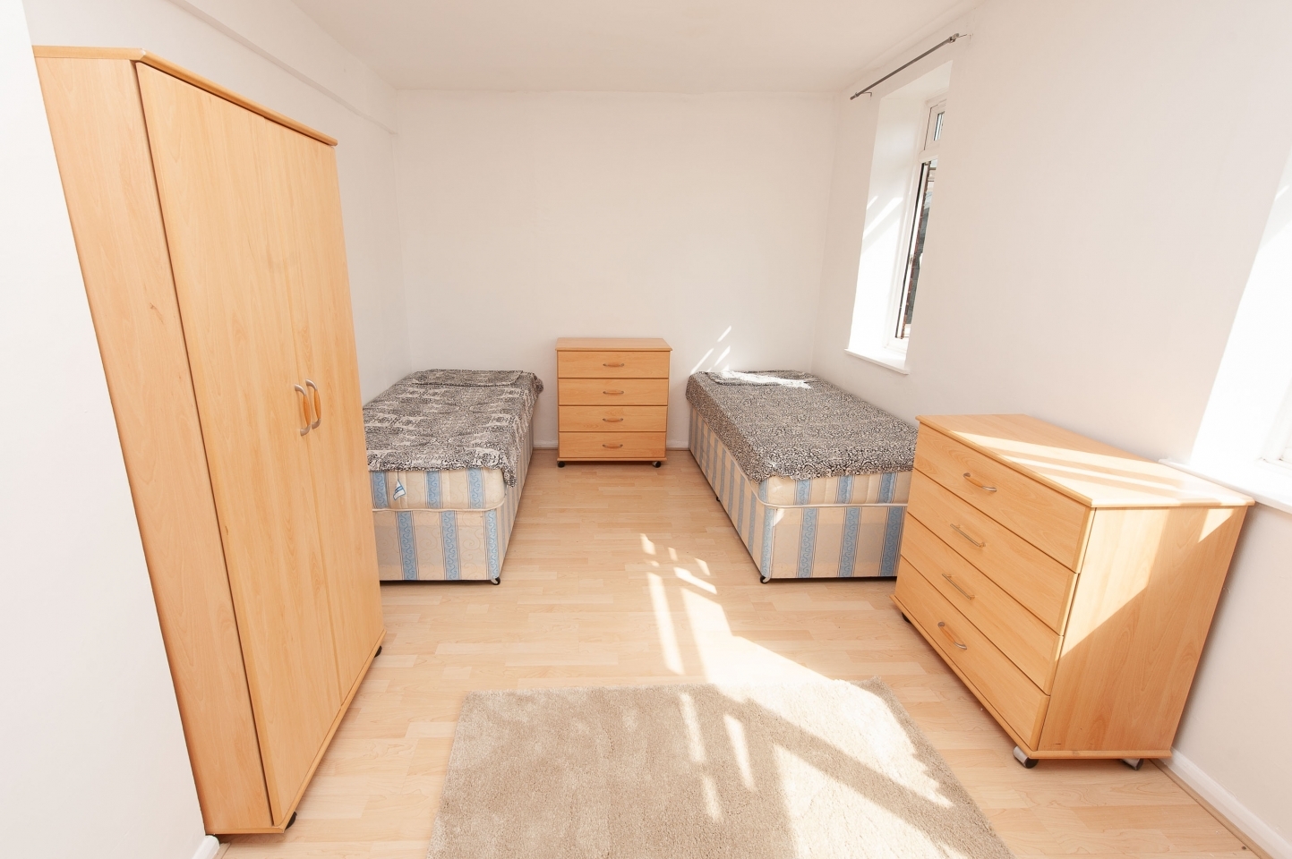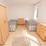 This room has two single beds, two closets and a desk, the kitchen is super equipped with microwave, refrigerator, stove, oven, washing machine and toaster, plus the house has a living room with TV, to the total are 3 bedrooms and a bathroom.
